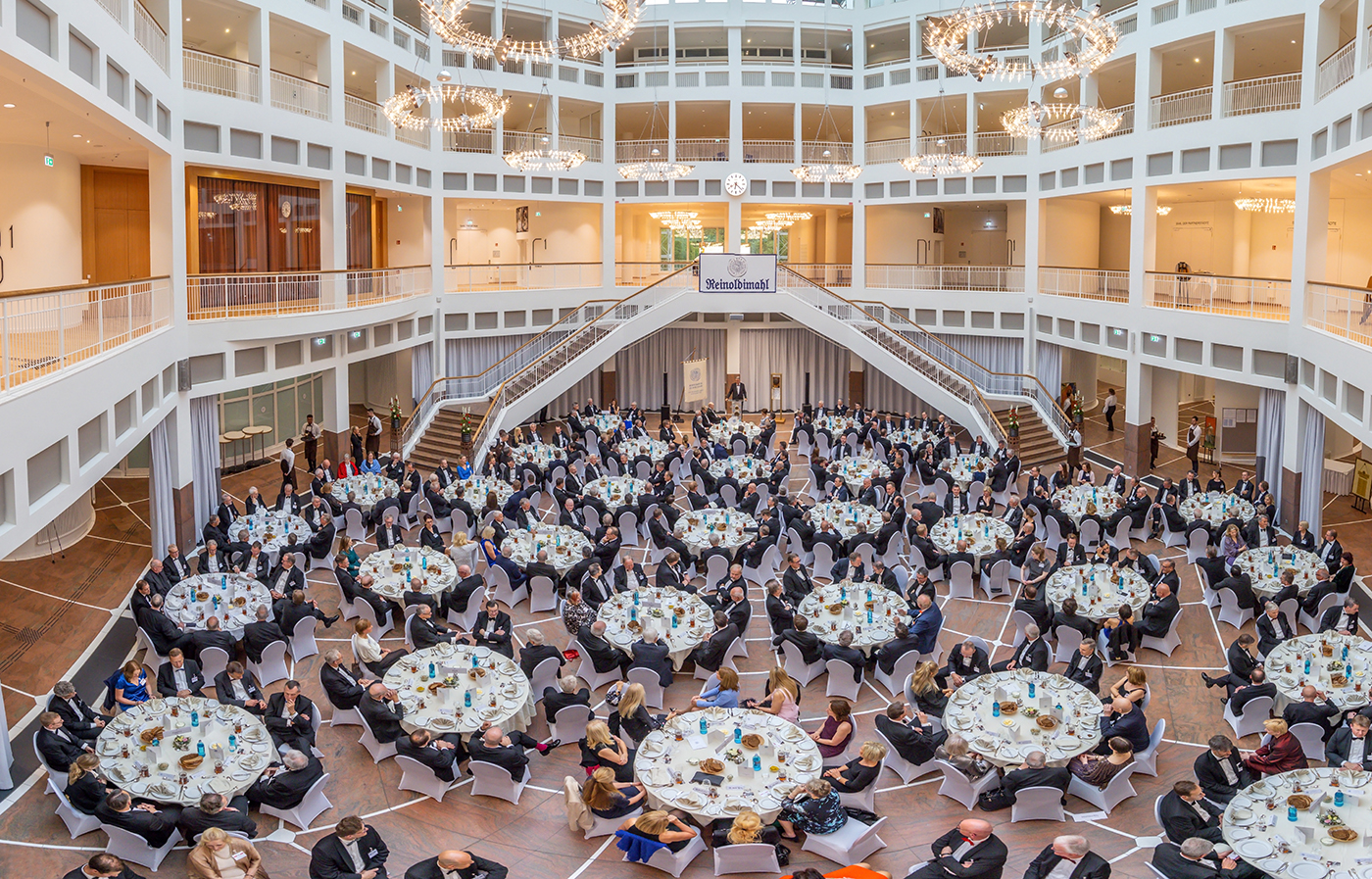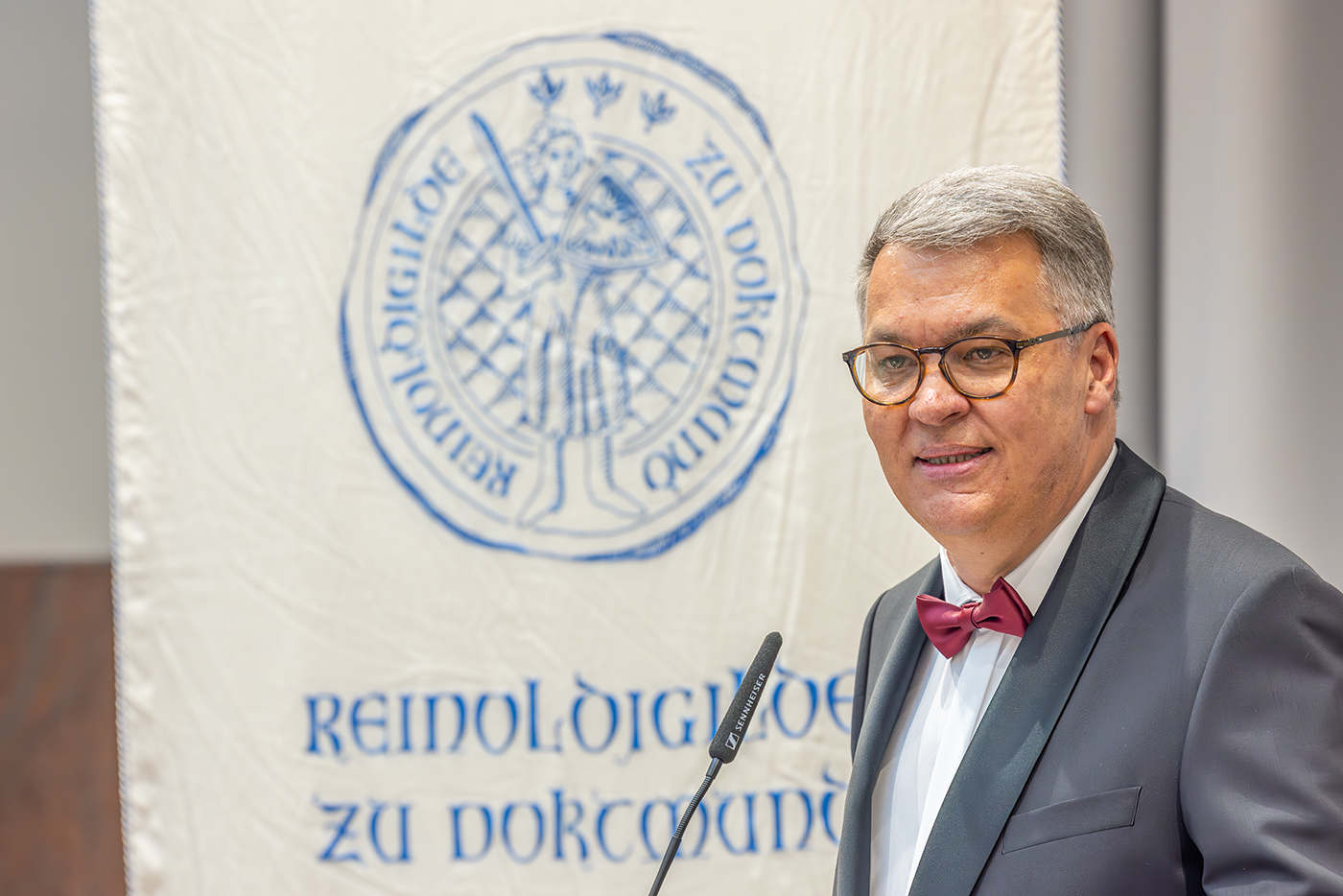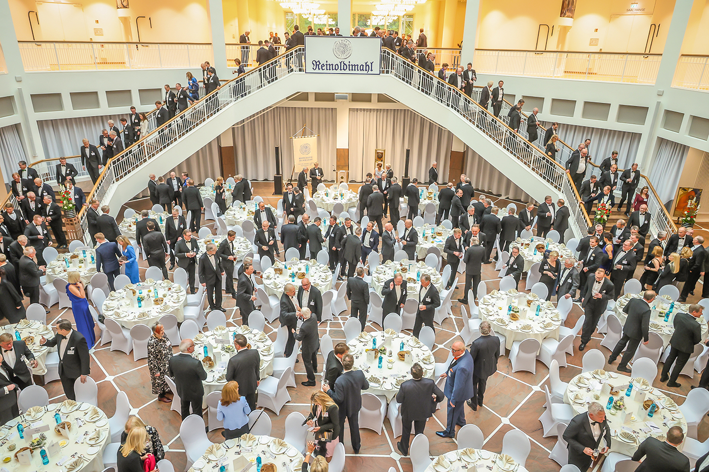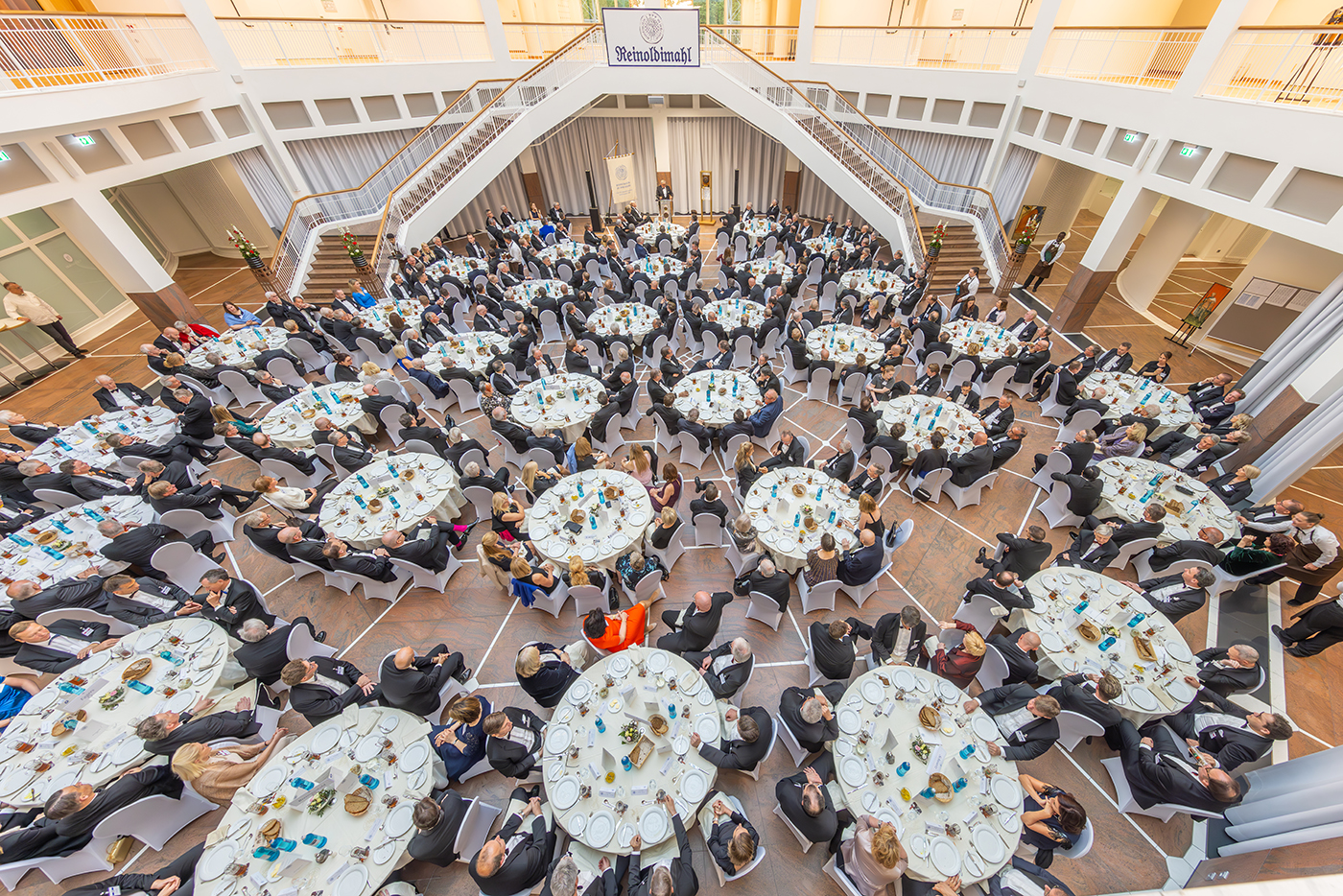 Am 3. Mai 2024 nahmen fast 320 Persönlichkeiten, u.a. aus Wirtschaft und Politik, an dem traditionsreichen Reinoldimahl teil. Erstmals seit 2019 konnte diese bedeutende Zusammenkunft der Gildnerinnen und Gildner mit ihren Gästen wieder in der angestammten und frisch renovierten Bürgerhalle des Neuen Rathauses stattfinden.
