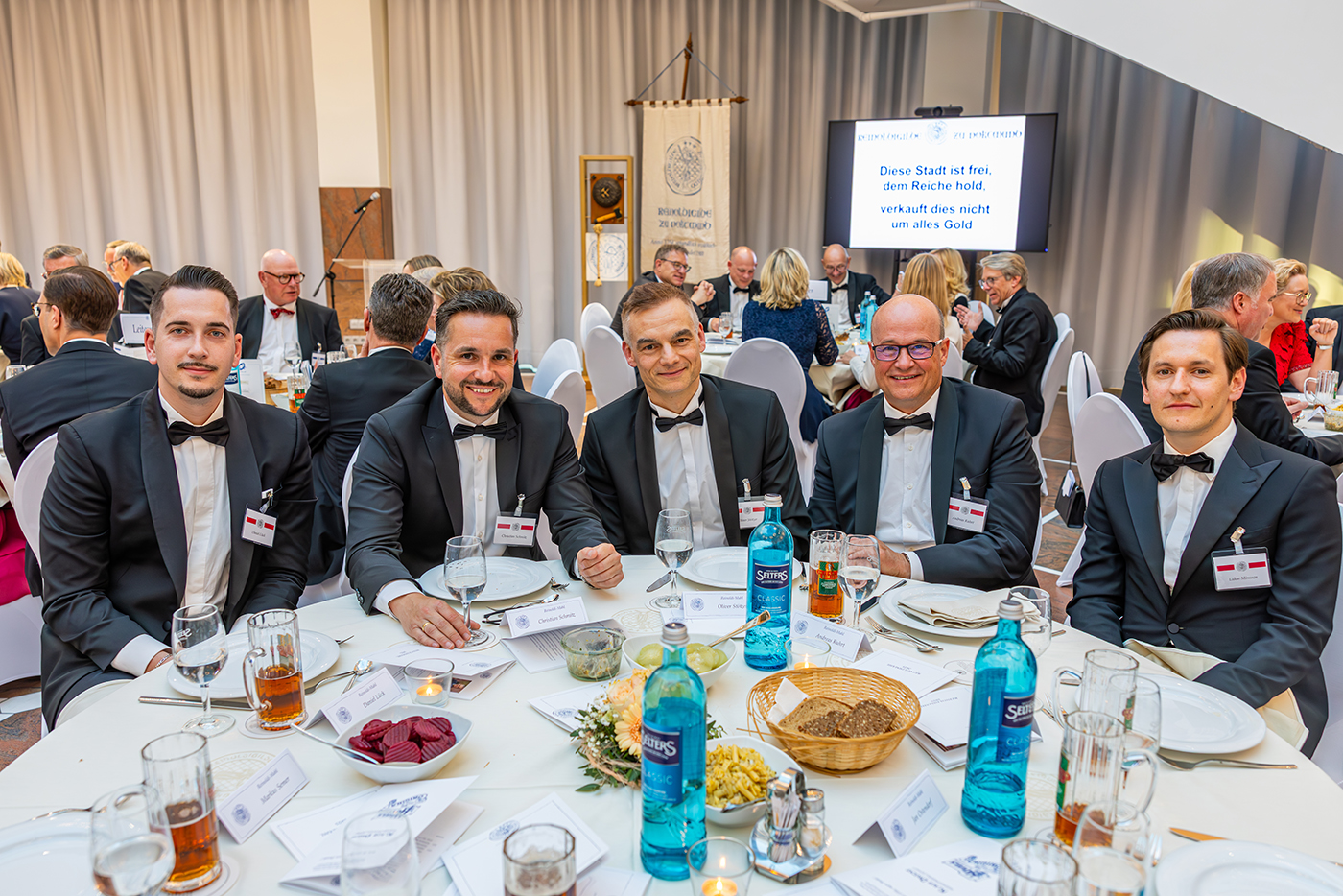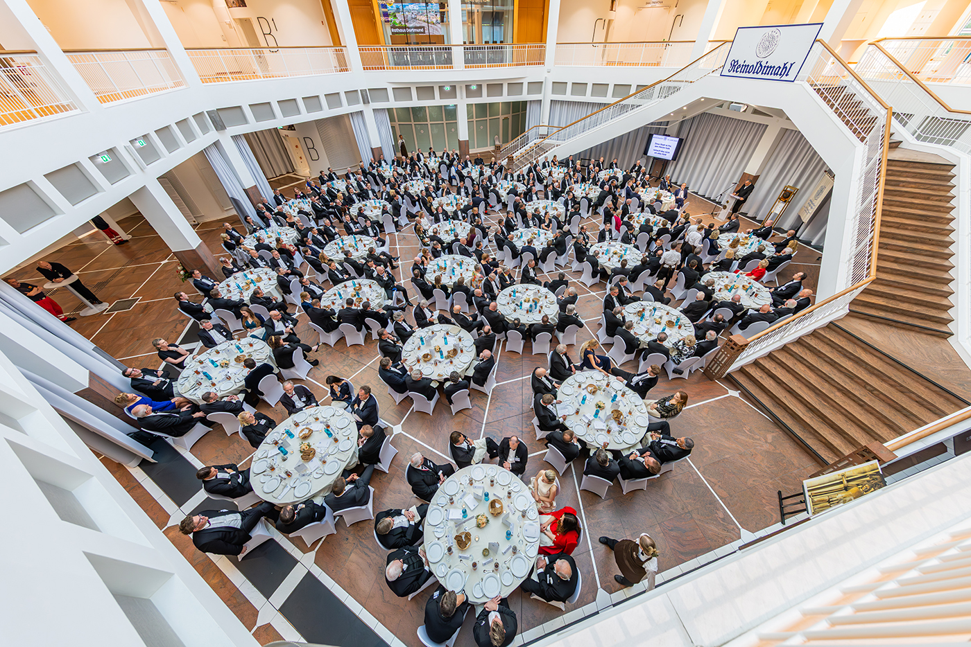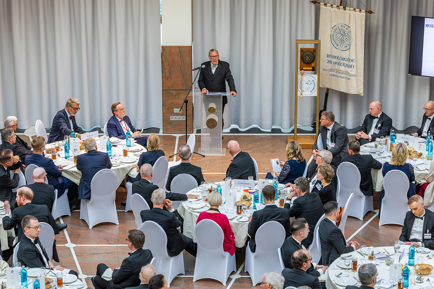 Am 9. Mai 2025 versammelten sich rund 360 Gäste aus Wirtschaft, Wissenschaft, Kirche, Kultur und Gesellschaft zum traditionellen Reinoldimahl in der Bürgerhalle des Dortmunder Rathauses. Wie in jedem Jahr war das festliche Bankett ein besonderer Ort der Begegnung – und des Erinnerns an die Werte, für die die Reinoldigilde seit Jahrhunderten steht: Probitas – Fides – Constantia.